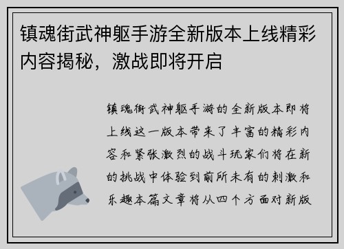 文章摘要:肯瑞托声望是《魔兽世界》中的一种重要声望,玩家提升该声望不仅能解锁独特的游戏奖励,还能获取各种增益效果,丰富玩家的游戏体验。本篇攻略将详细介绍如何通过提升肯瑞托声望来获得全新游戏奖励,重点分析四个主要方面:日常任务与世界任务的获取与完成,参与特殊事件与副本的奖励机制,如何通过贸易与工艺提升...